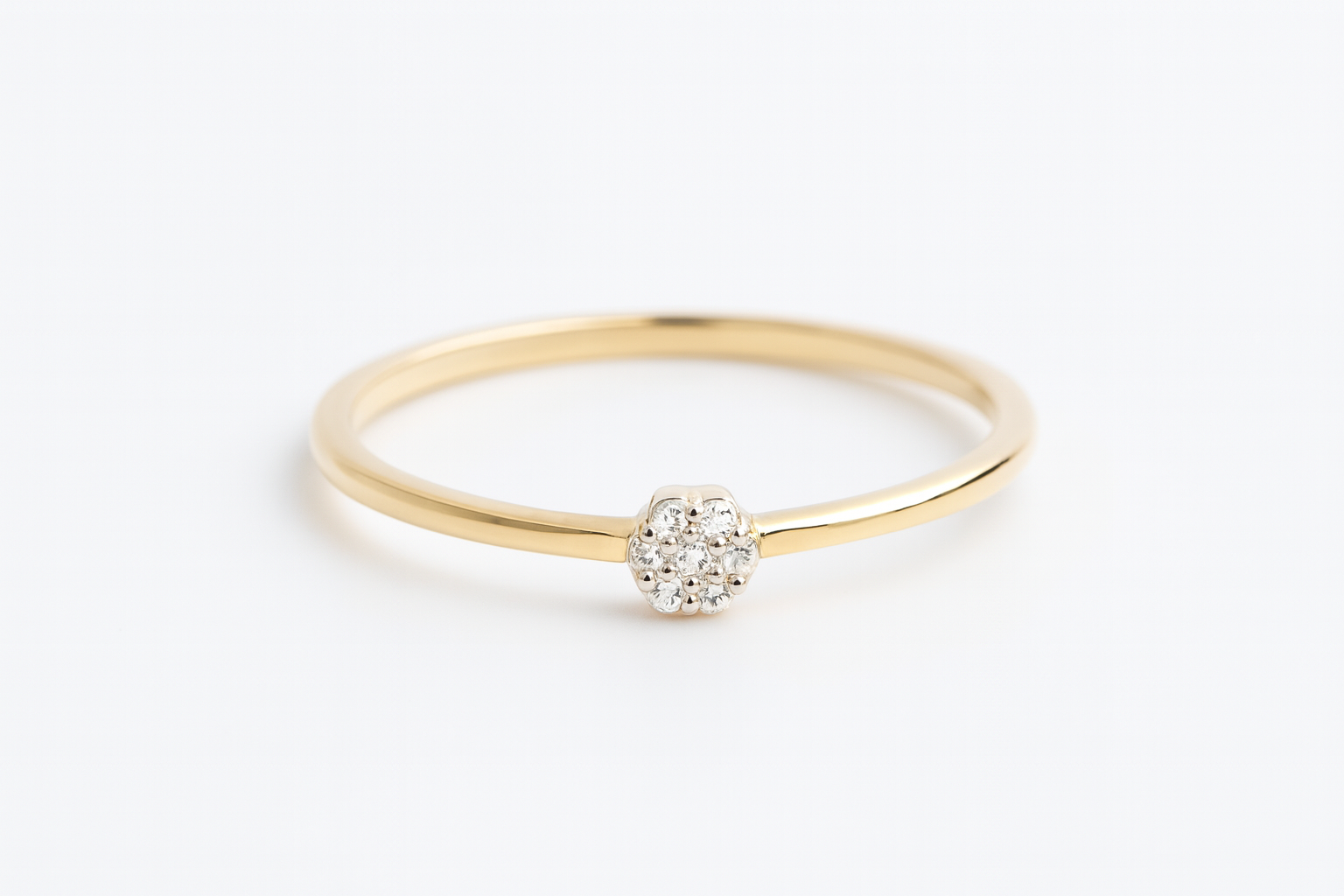 Anel chuveiro redondo em ouro 18k com zircônias.