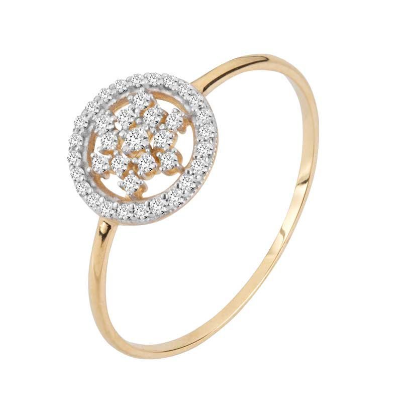 Anel círculo vazado e flor em ouro 18k com zircônias.