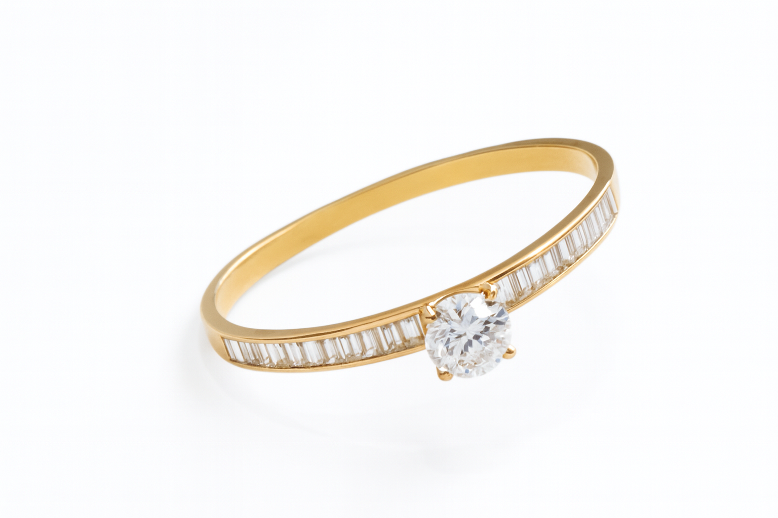 Anel solitário em ouro 18k com zircônias.