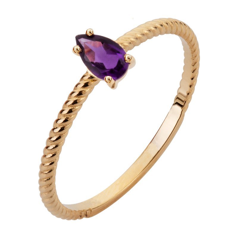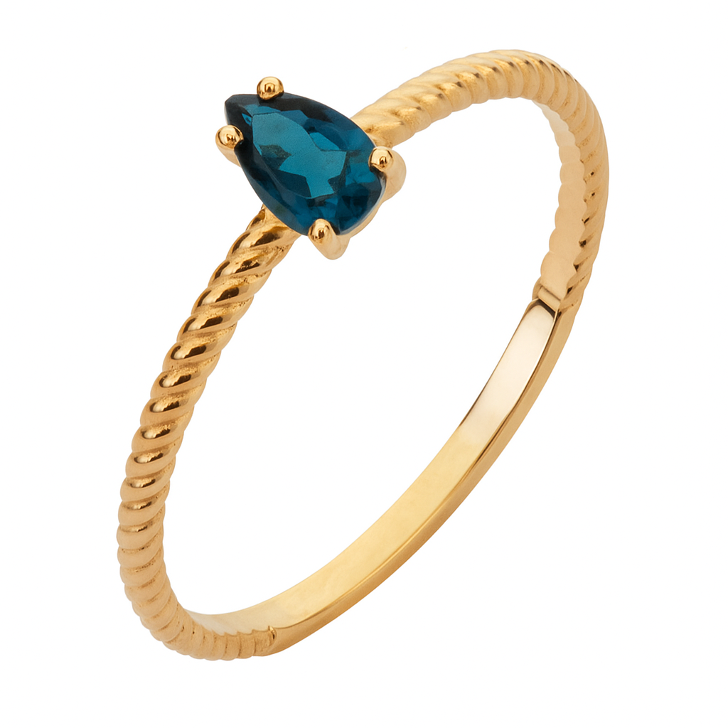 Anel solitário torcido em ouro 18k com pedras naturais (topázio london, ametista e jade verde).