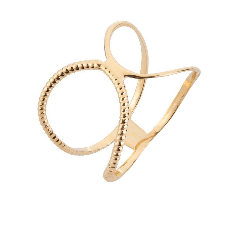 Anel X lado liso e lado com bolinhas em ouro 18k.