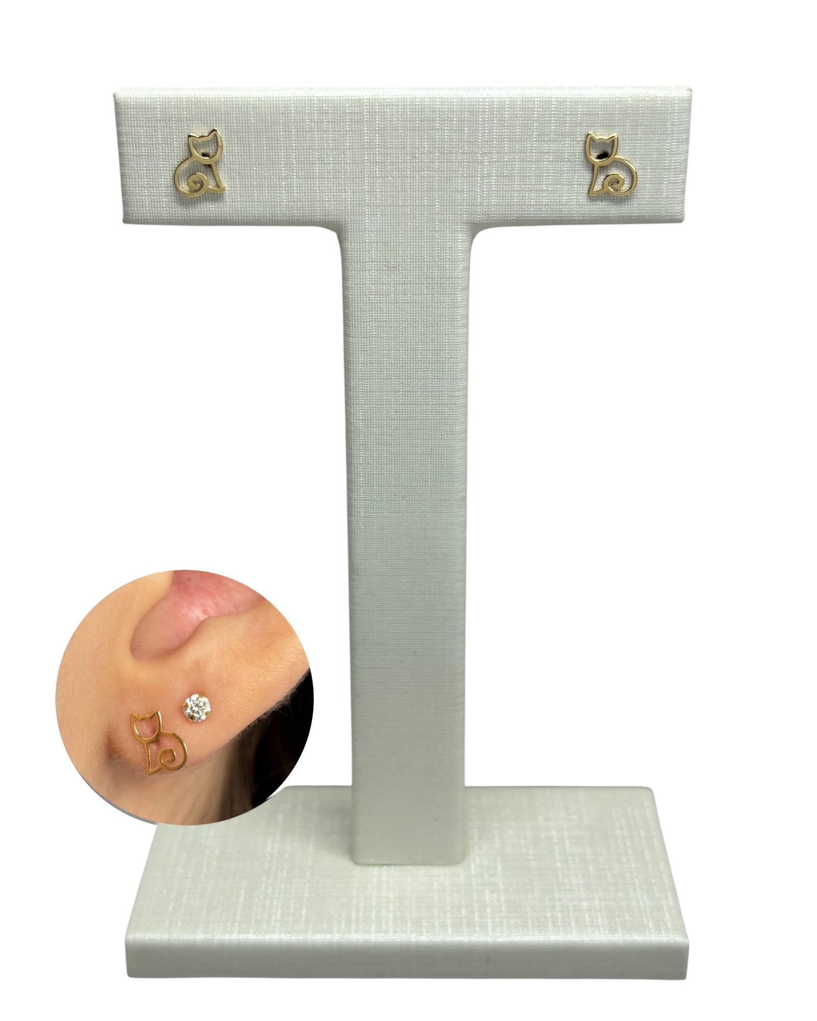 Brinco gato vazado em ouro 18k.