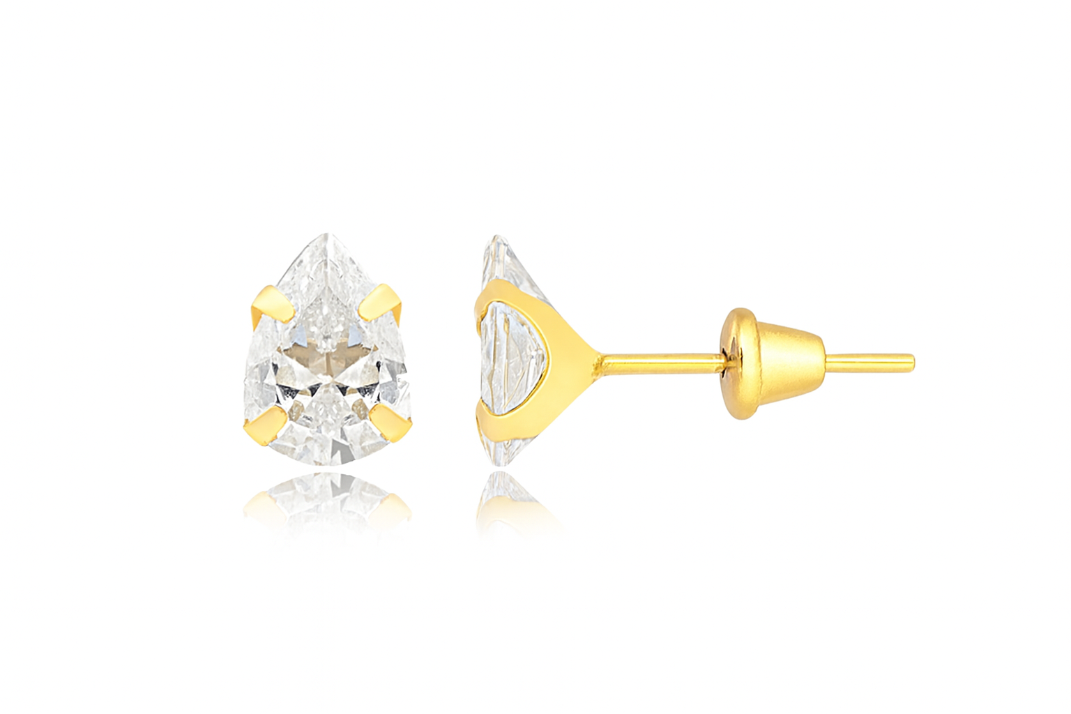 Brinco gota em ouro 18k com zircônia de 4x6mm.