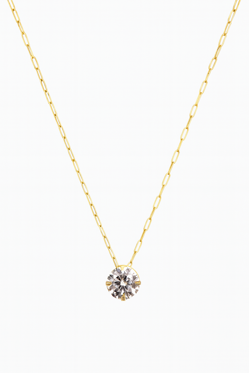 Gargantilha ponto de luz redondo em zircônia com corrente cartier de 45cm em ouro 18k.