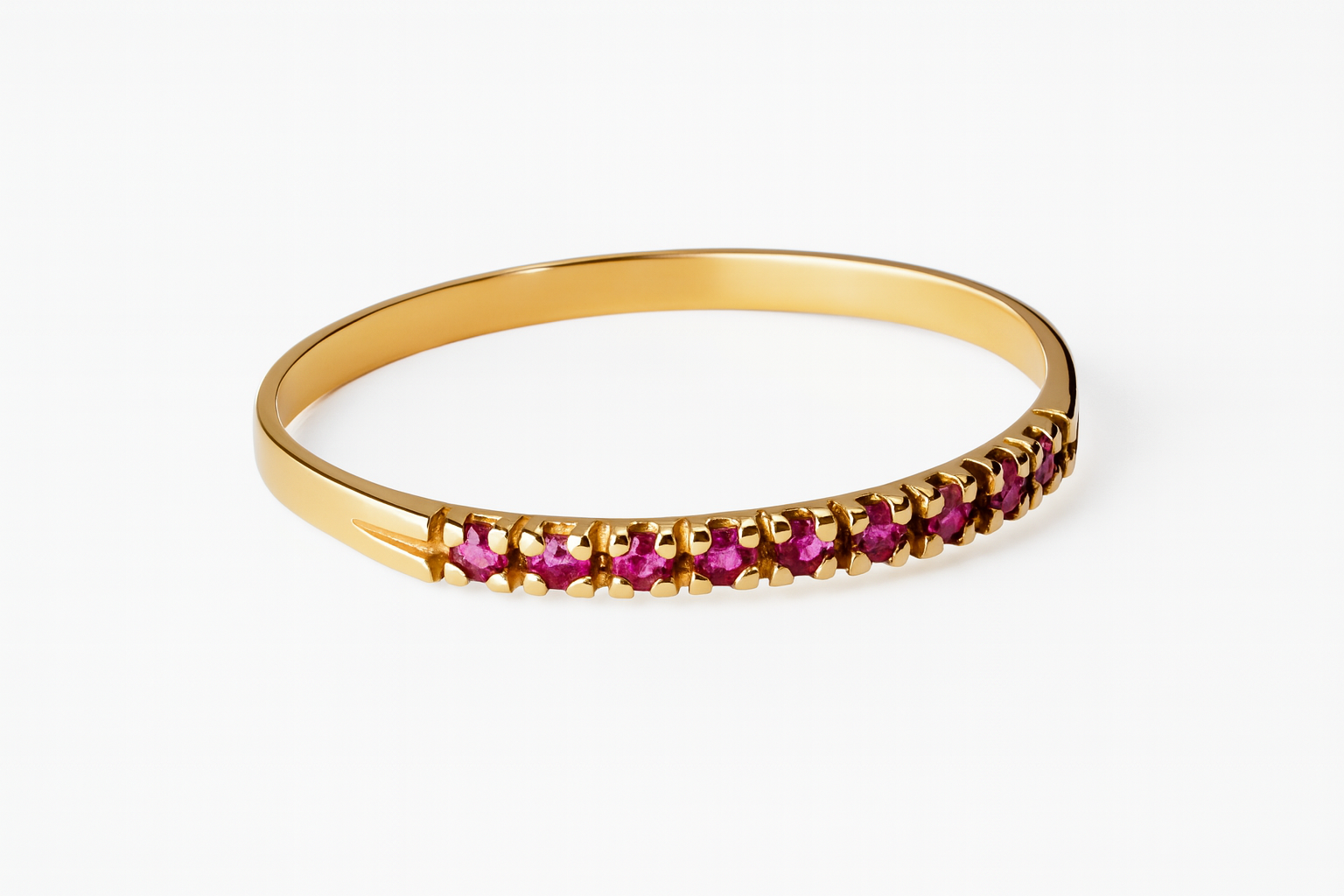 Meia aliança em ouro 18k com 9 zircônias.
