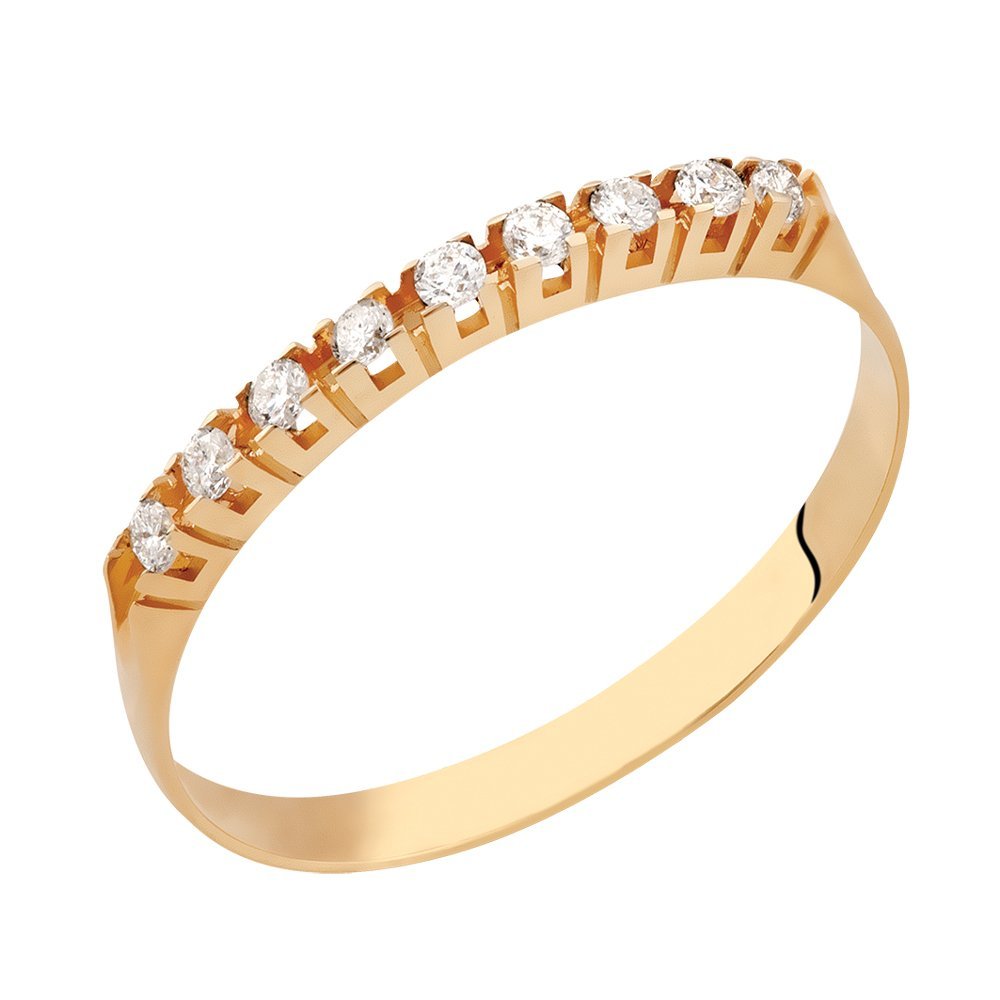 Meia aliança em ouro 18k com 9 zircônias.