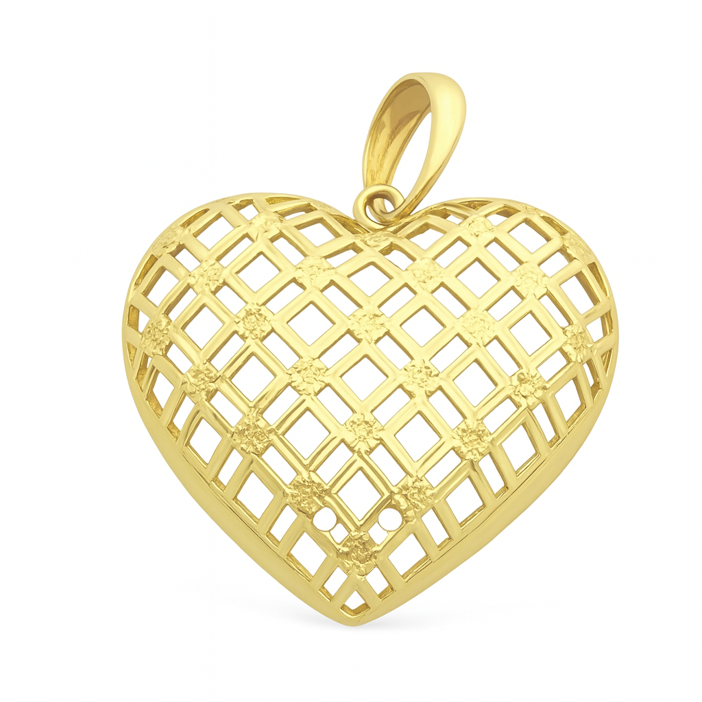 Pingente coração diamantado em ouro 18k.