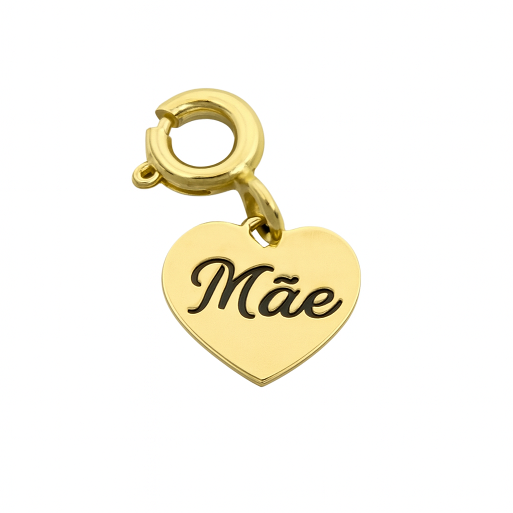 Pingente coração mãe com fecho em ouro 18k.