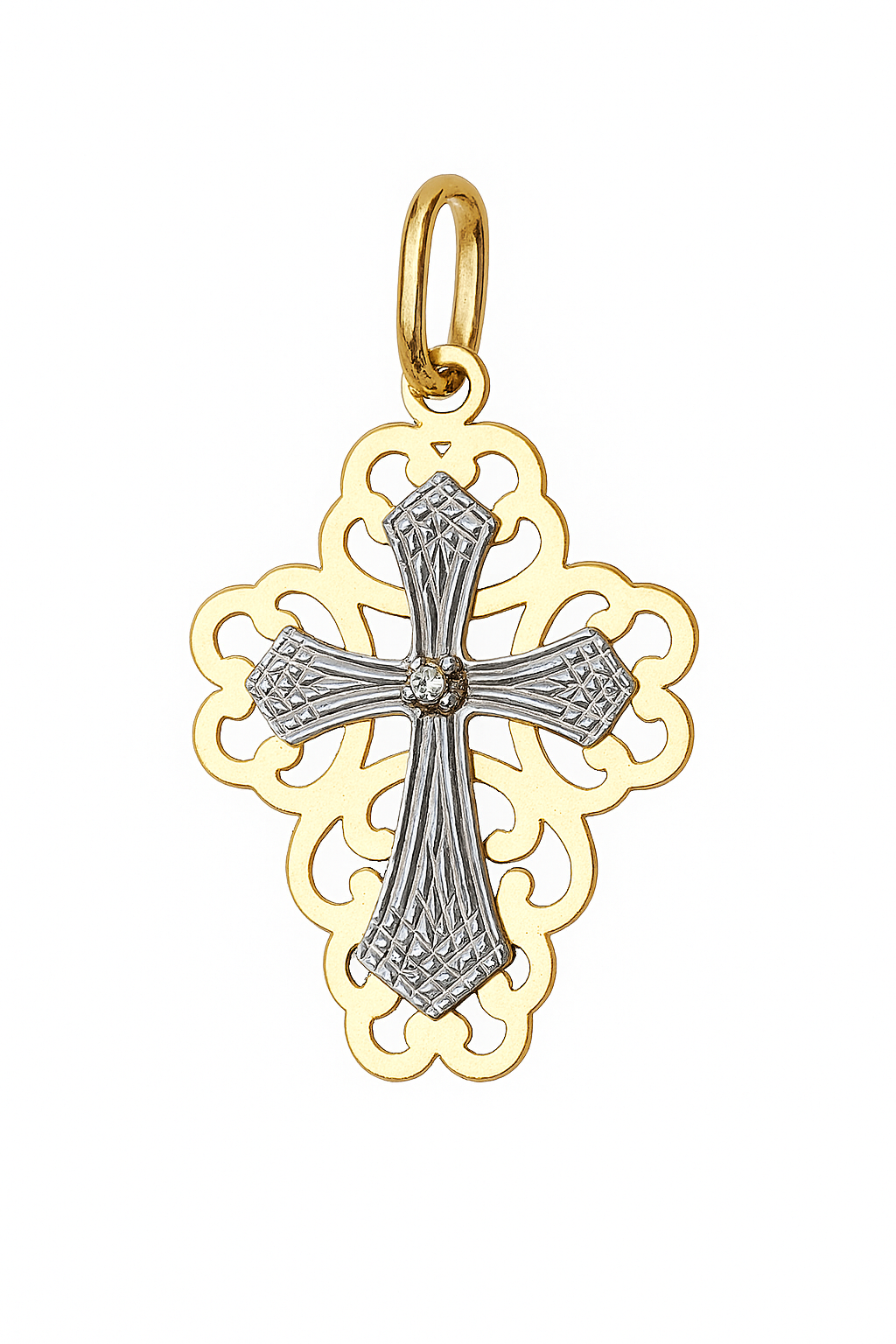 Pingente Cruz Bicolor em ouro 18k com 1 brilhante.
