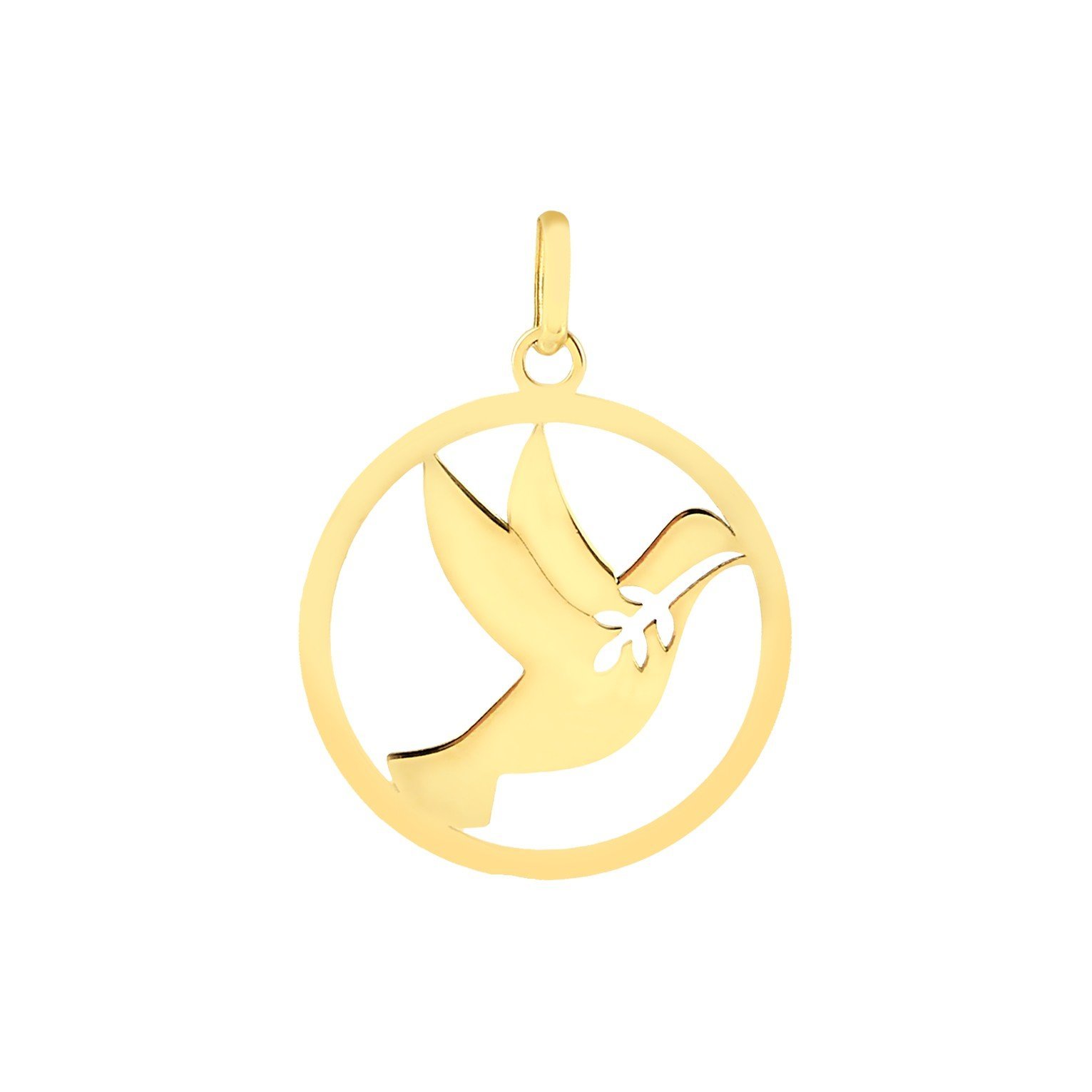 Pingente Espírito Santo com ramo vazado em ouro 18k.