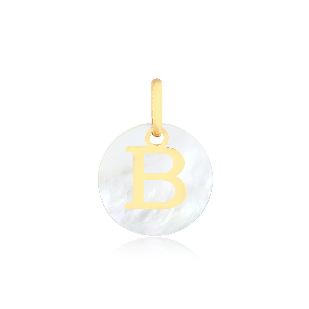 Pingente Letra B com Madrepérola de 12mm de diâmetro em ouro 18k