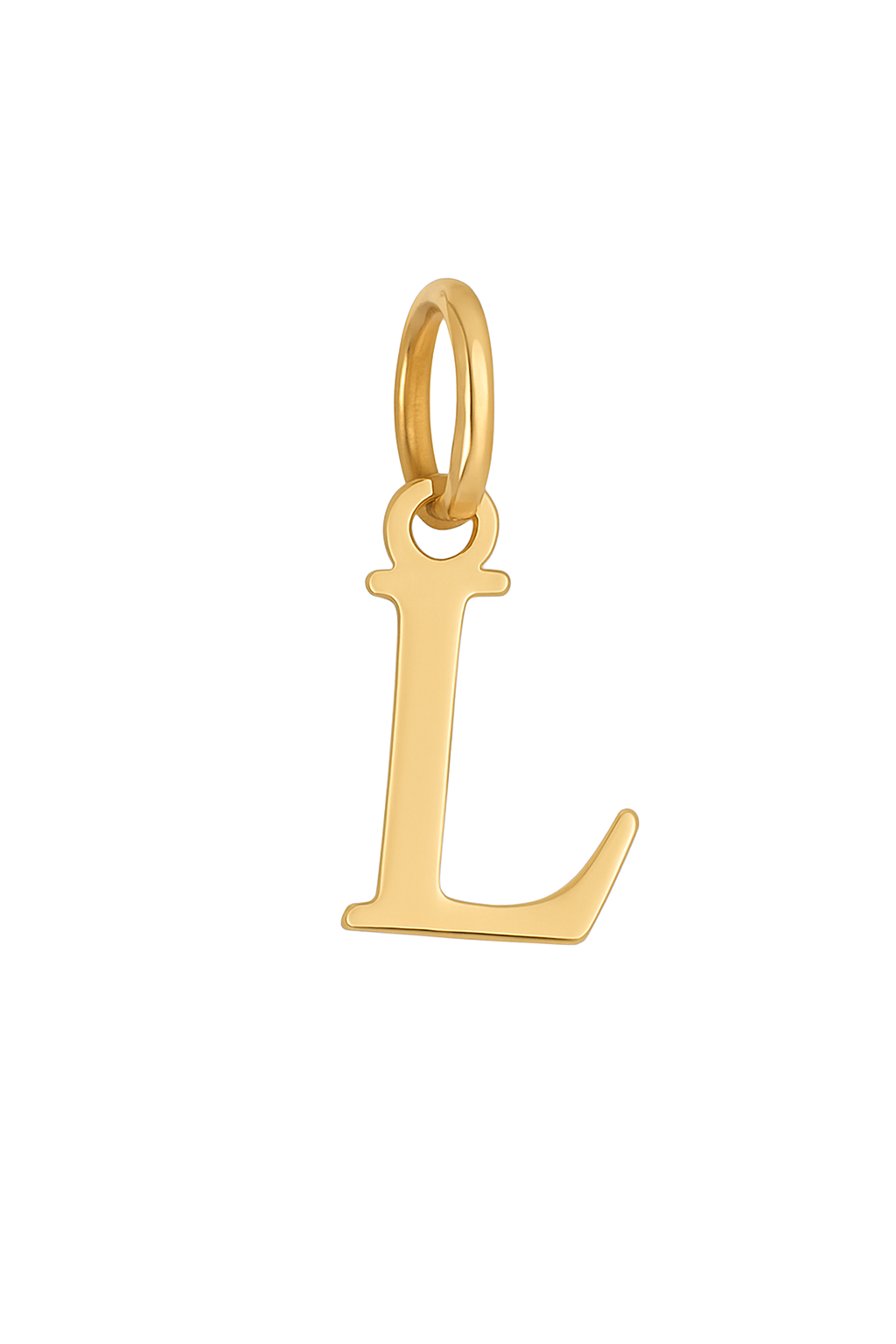 Pingente letra L medindo 8x7mm em ouro 18k.