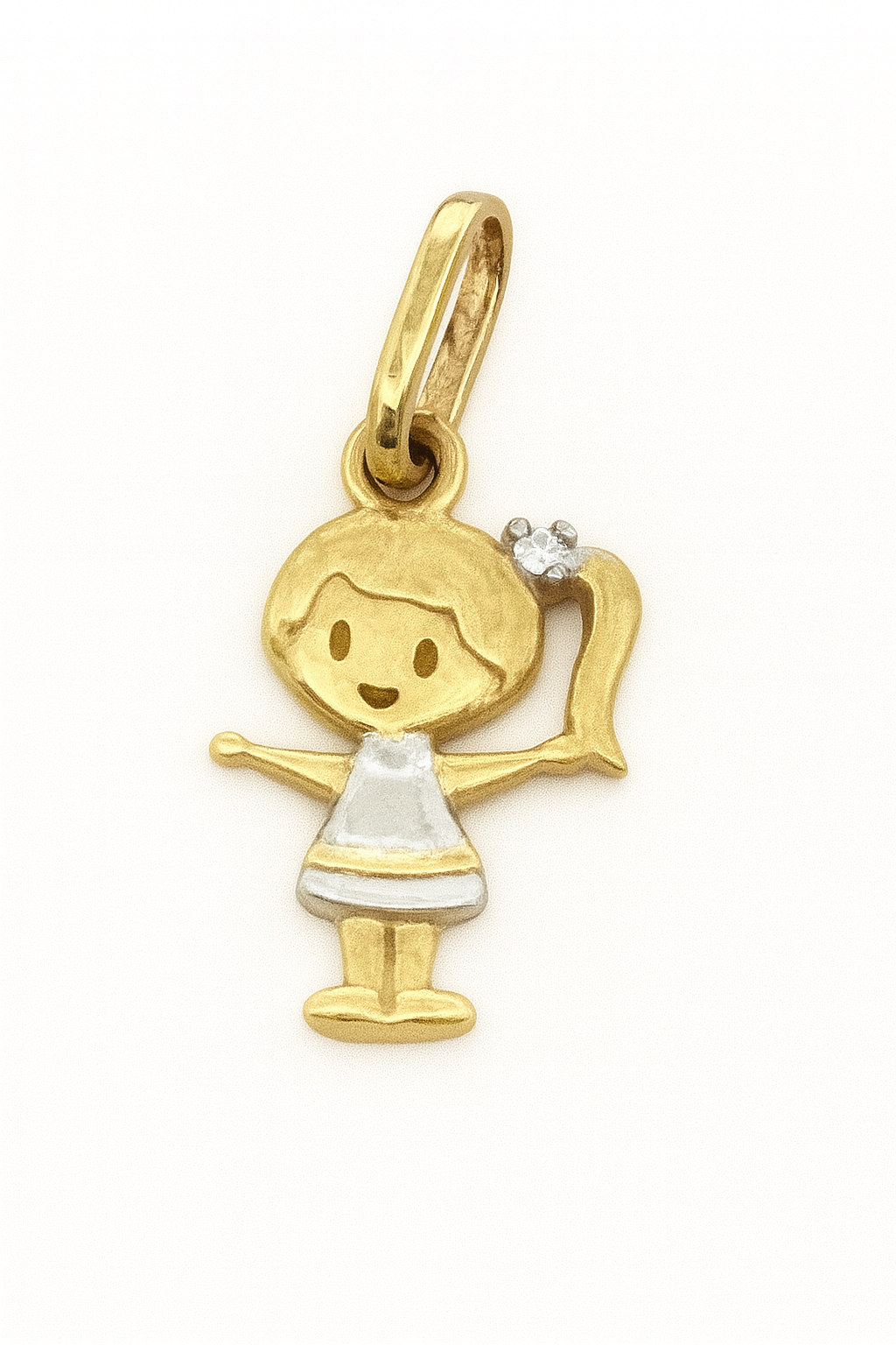 Pingente menina em ouro amarelo 18k e ouro branco com zircônia.