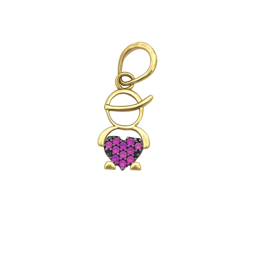 Pingente menino com coração em ouro 18k com zircônias.