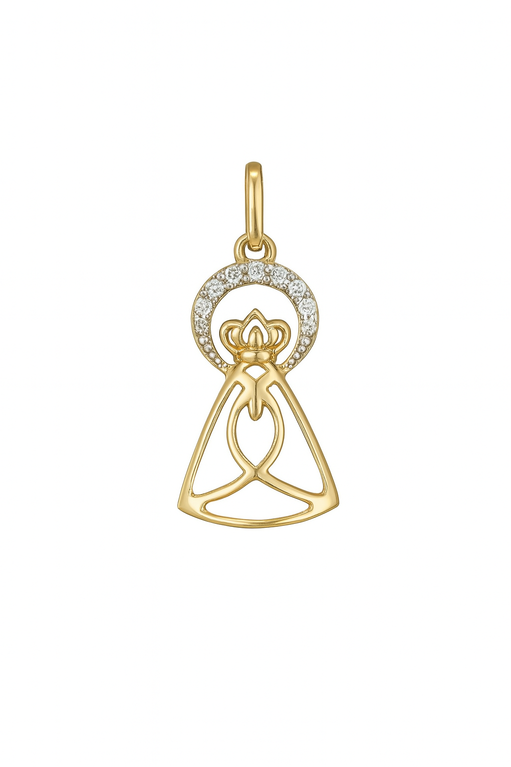 Pingente Nossa Senhora Aparecida em ouro 18k com 9 brilhantes.