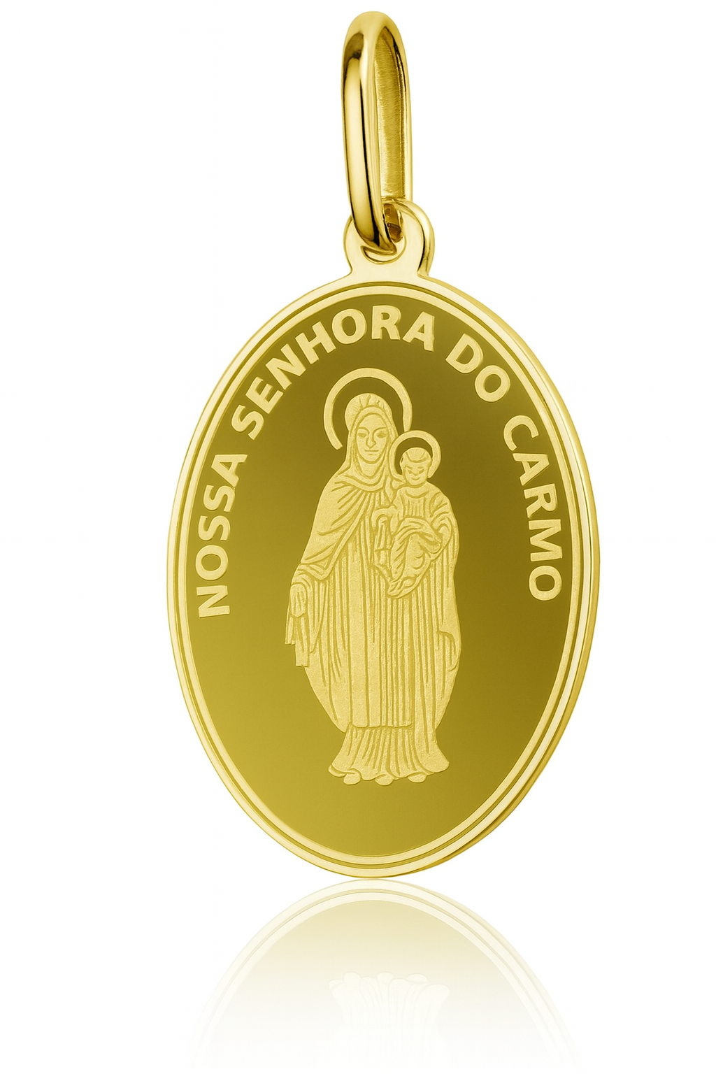 Pingente medalha Nossa Senhora do Carmo em ouro 18k.